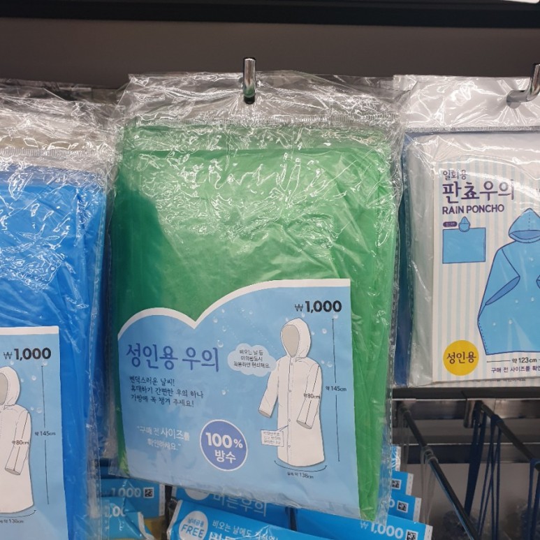 일회용 판초우의를 팔고 있었어요!